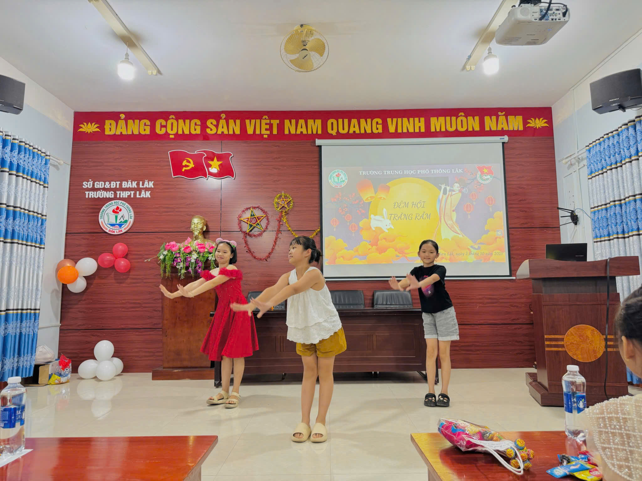 Chiều ngày 03/10/2025, trong không gian ấm áp và rộn rã tại sân trường, Trường THPT Lăk đã tổ chức chương trình “Đêm hội Trăng Rằm” dành cho con em cán bộ, giáo viên và công nhân viên nhà trường. Đây là hoạt động ý nghĩa, thể hiện sự quan tâm của nhà trường đối với thế hệ thiếu nhi – những mầm non tương lai của đất nước.