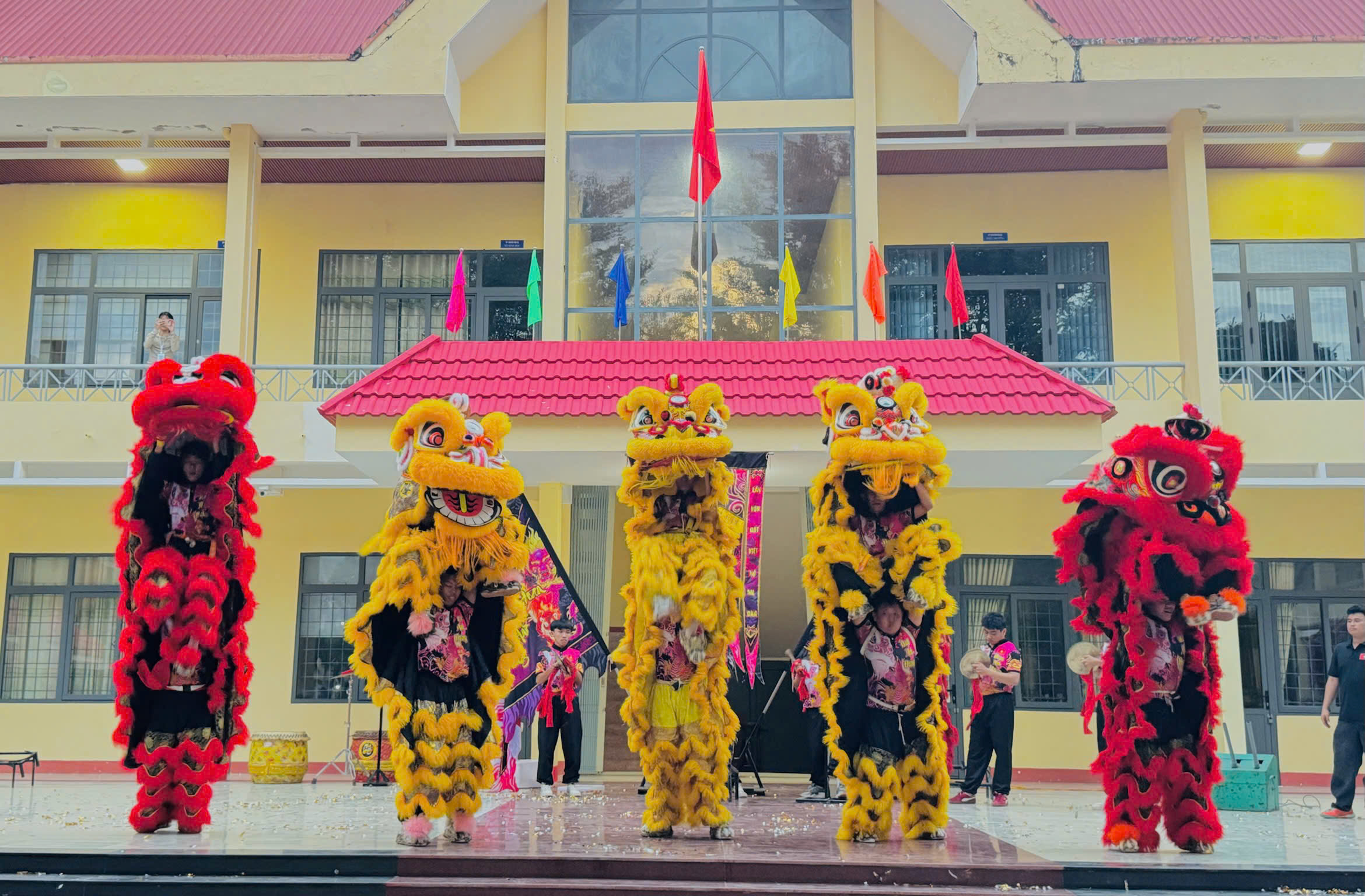 Ngay từ những phút mở màn, cả sân trường đã bừng lên sức sống với tiếng trống rộn ràng và những bước nhảy đầy khí thế của Đội lân Đoan Anh Đường, mang đến bầu không khí tưng bừng, rộn rã, mở đầu cho một đêm hội tràn ngập niềm vui.