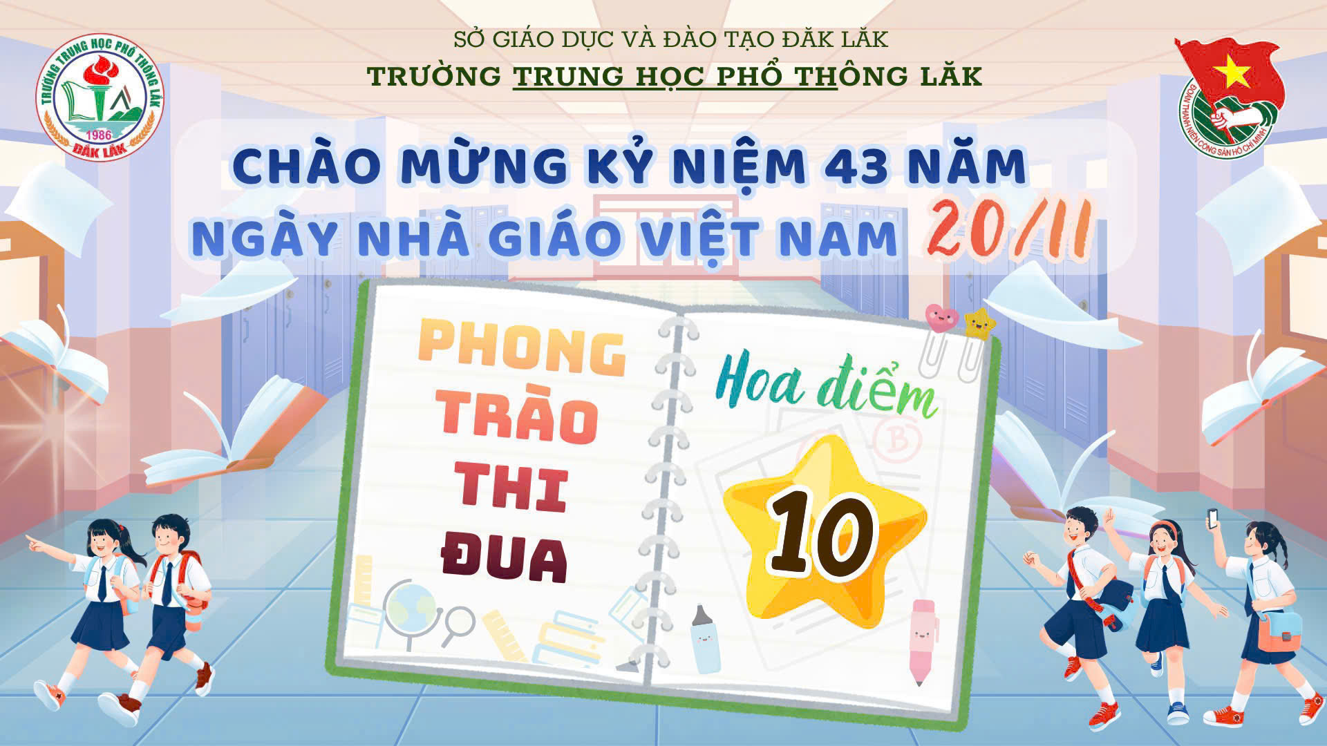 Nhân dịp 20/11, BCH Đoàn trường xin kính chúc quý thầy cô trường THPT Lăk thật nhiều sức khỏe, niềm vui và giữ mãi nhiệt huyết với nghề. Thành công của học sinh hôm nay chính là minh chứng cho sự cống hiến thầm lặng và cao quý của thầy cô trong hành trình gieo mầm tri thức.