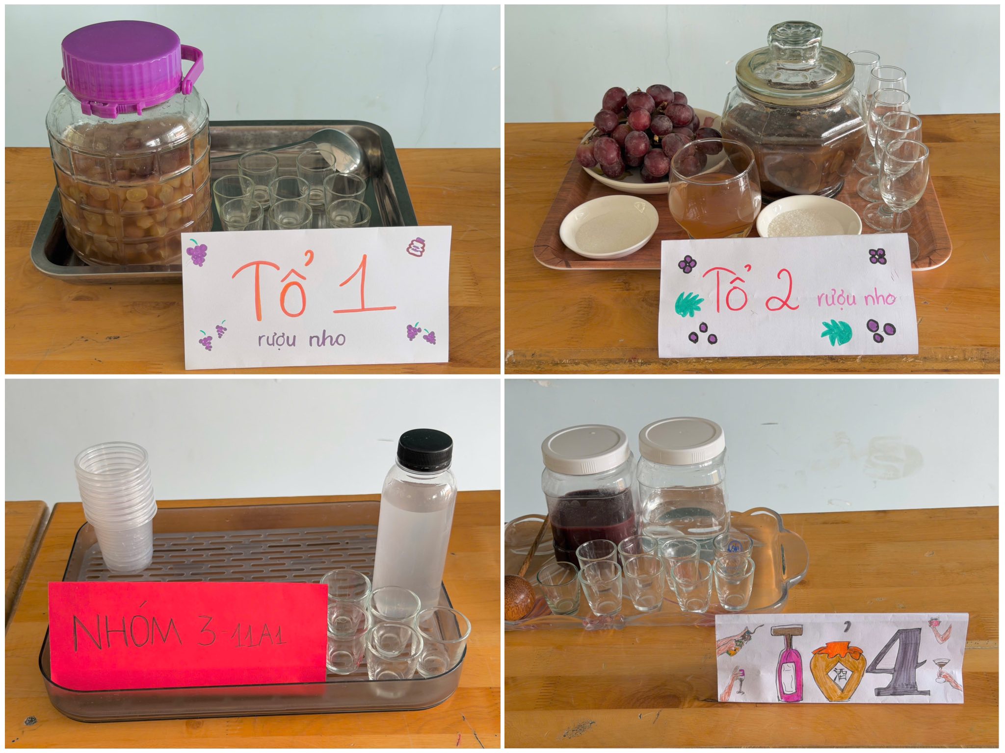 Nhóm 1 và 2 trình bày sản phẩm rượu nho.