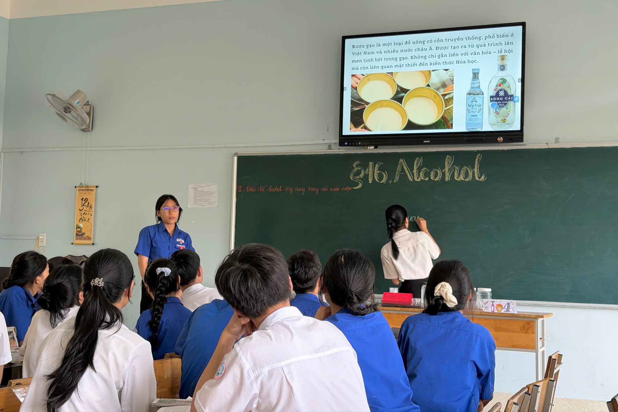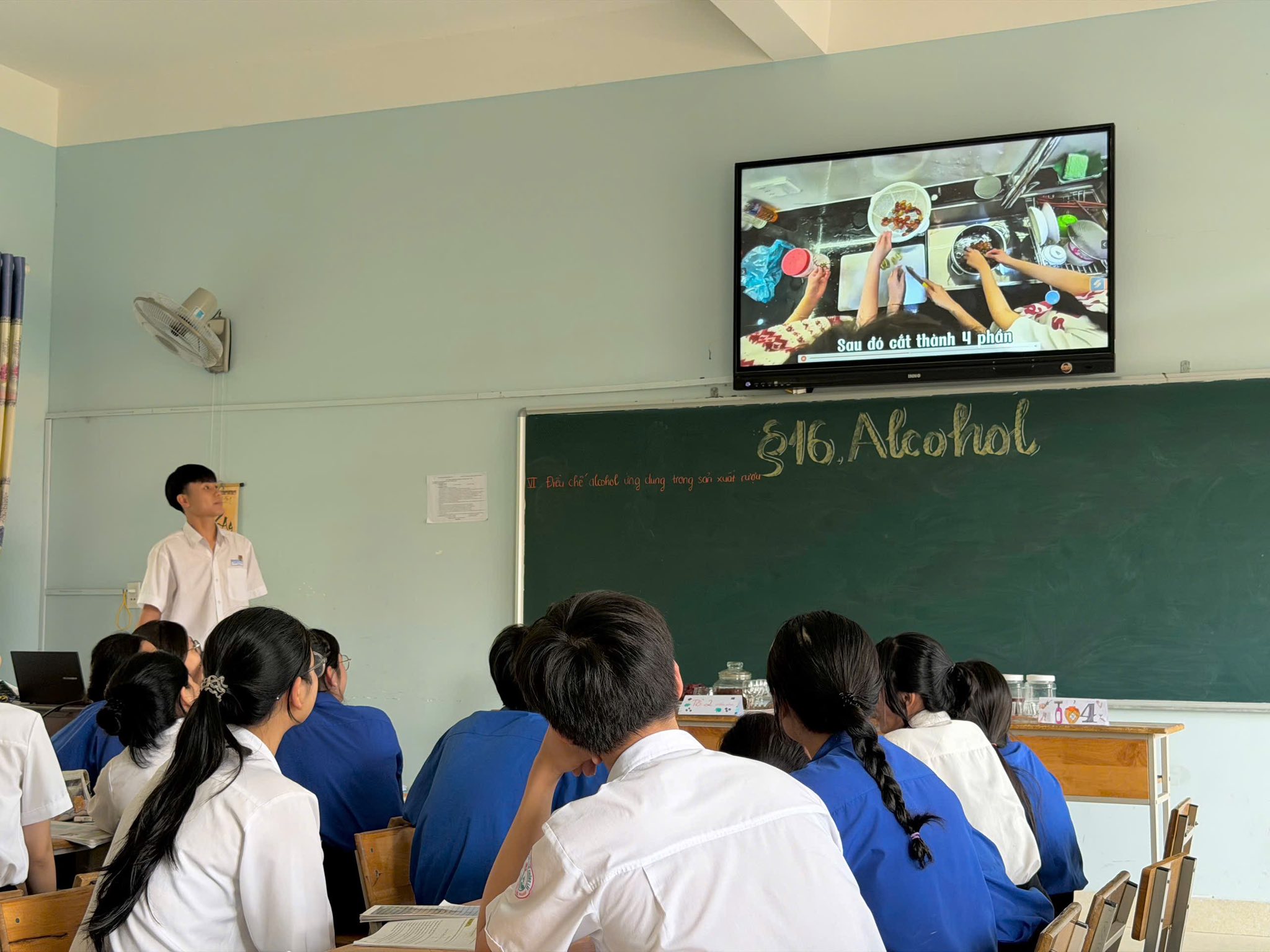 Điểm nổi bật của tiết học nằm ở việc triển khai theo định hướng STEM thông qua hình thức dạy học dự án. Học sinh không còn tiếp cận kiến thức một cách thụ động mà trực tiếp tham gia vào quá trình trải nghiệm. Các em mang đến lớp những sản phẩm rượu tự điều chế tại nhà, từ đó trình bày và phân tích kiến thức liên quan đến quá trình lên men ancol, tạo nên sự kết nối chặt chẽ giữa lý thuyết và thực tiễn.