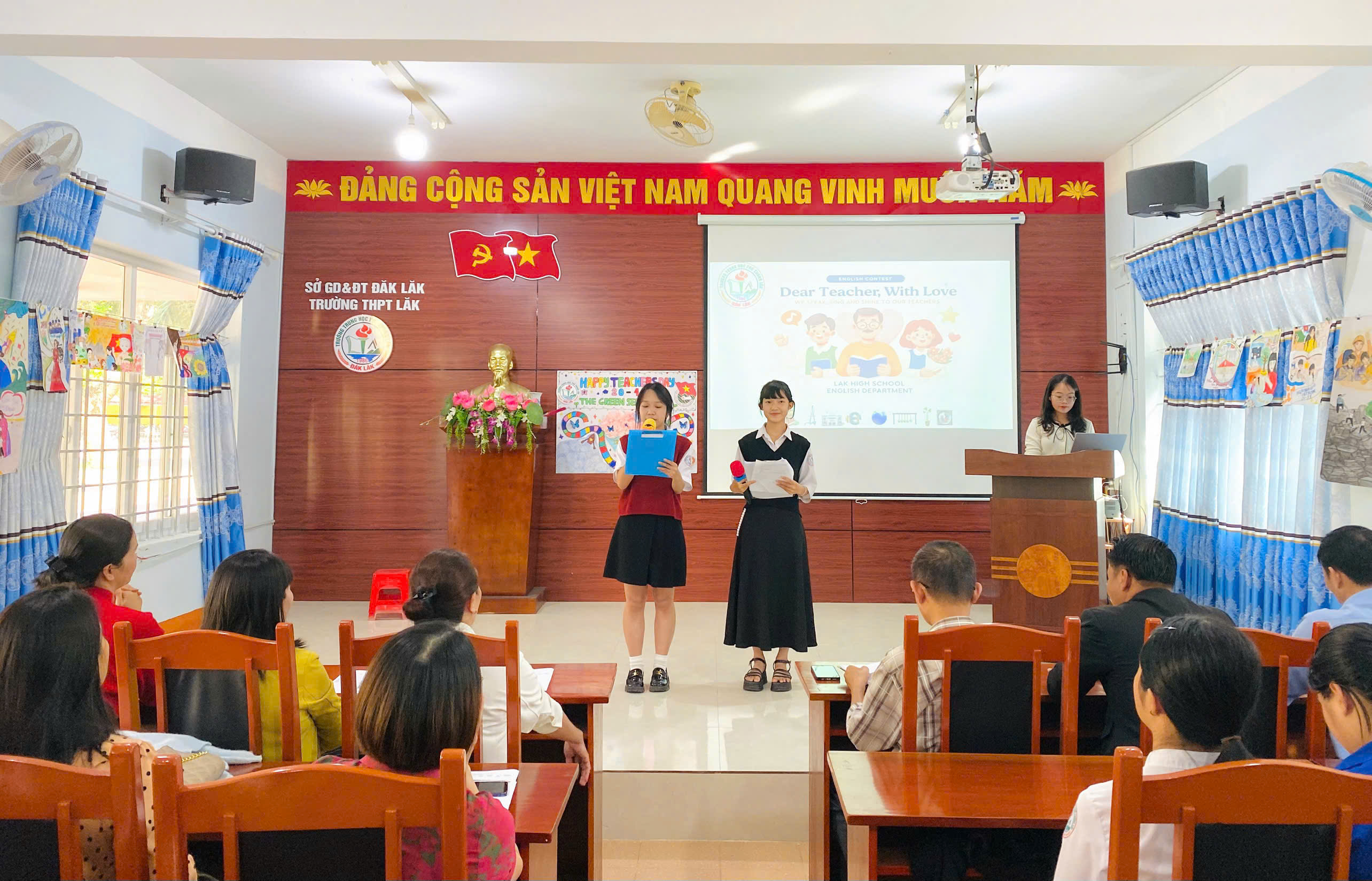 Chiều ngày 26/11/2025, Câu lạc bộ Tiếng Anh Trường THPT Lăk đã tổ chức buổi sinh hoạt ngoại khóa với không khí rộn ràng và đầy hứng khởi. Đây không chỉ là sân chơi bổ ích để học sinh thể hiện khả năng tiếng Anh, mà còn là dịp để các em gửi gắm tình cảm tri ân chân thành đến thầy cô của mình.