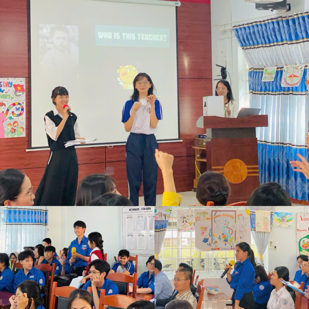 Không khí càng trở nên hào hứng khi hàng loạt trò chơi tiếng Anh như Guess the Teacher, đoán tên bài hát, giải đố nhanh… khiến cả hội trường bật cười, reo hò và tham gia nhiệt tình. Sự kết hợp giữa học mà chơi – chơi mà học tạo nên một buổi chiều đầy năng lượng tích cực.