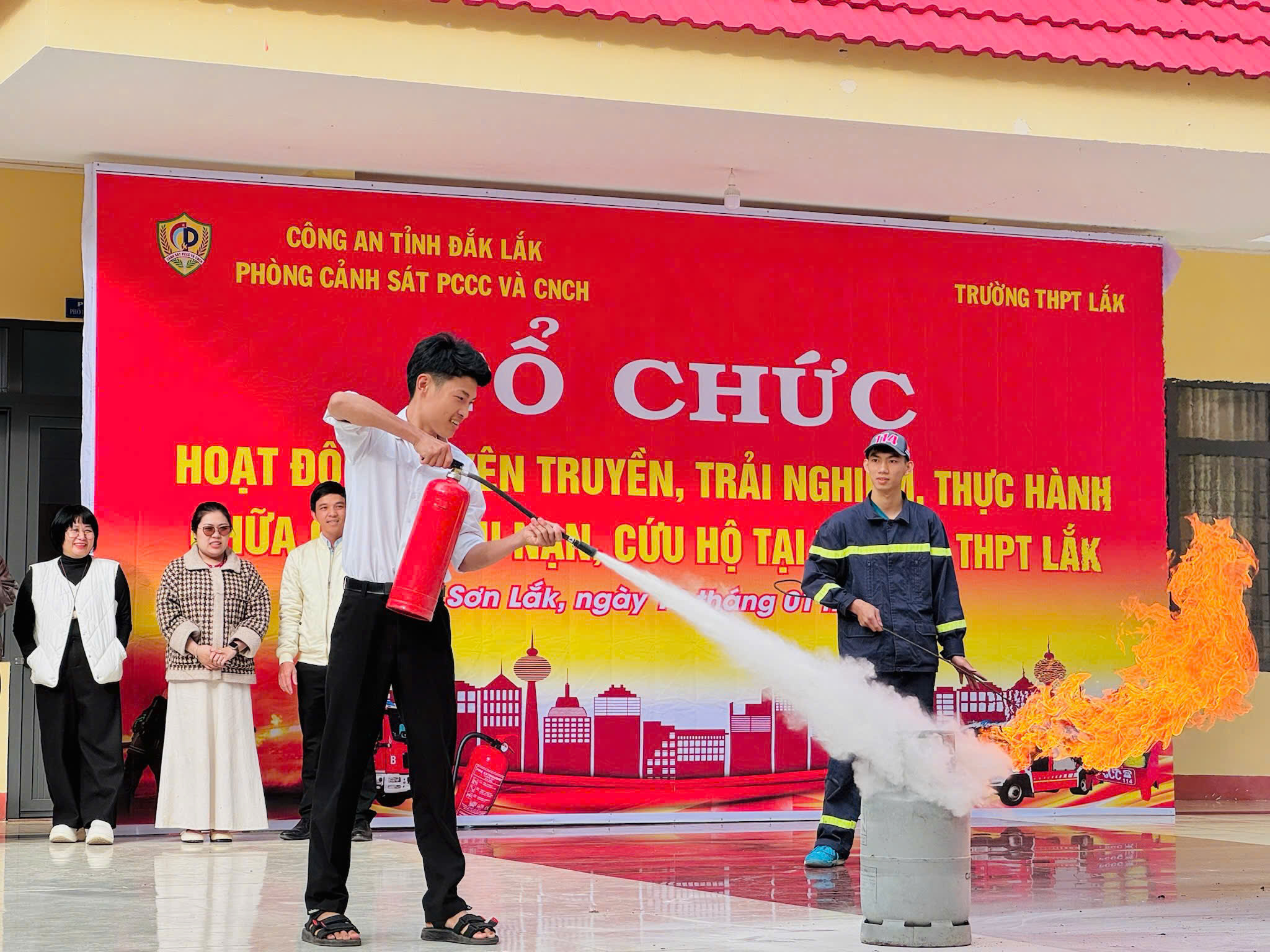 Trường THPT Lắk đã phối hợp với Công an tỉnh Đắk Lắk – Phòng Cảnh sát Phòng cháy, chữa cháy và Cứu nạn, cứu hộ (PCCC & CNCH) tổ chức hoạt động tuyên truyền, trải nghiệm và thực hành kỹ năng phòng cháy, chữa cháy và cứu nạn, cứu hộ.