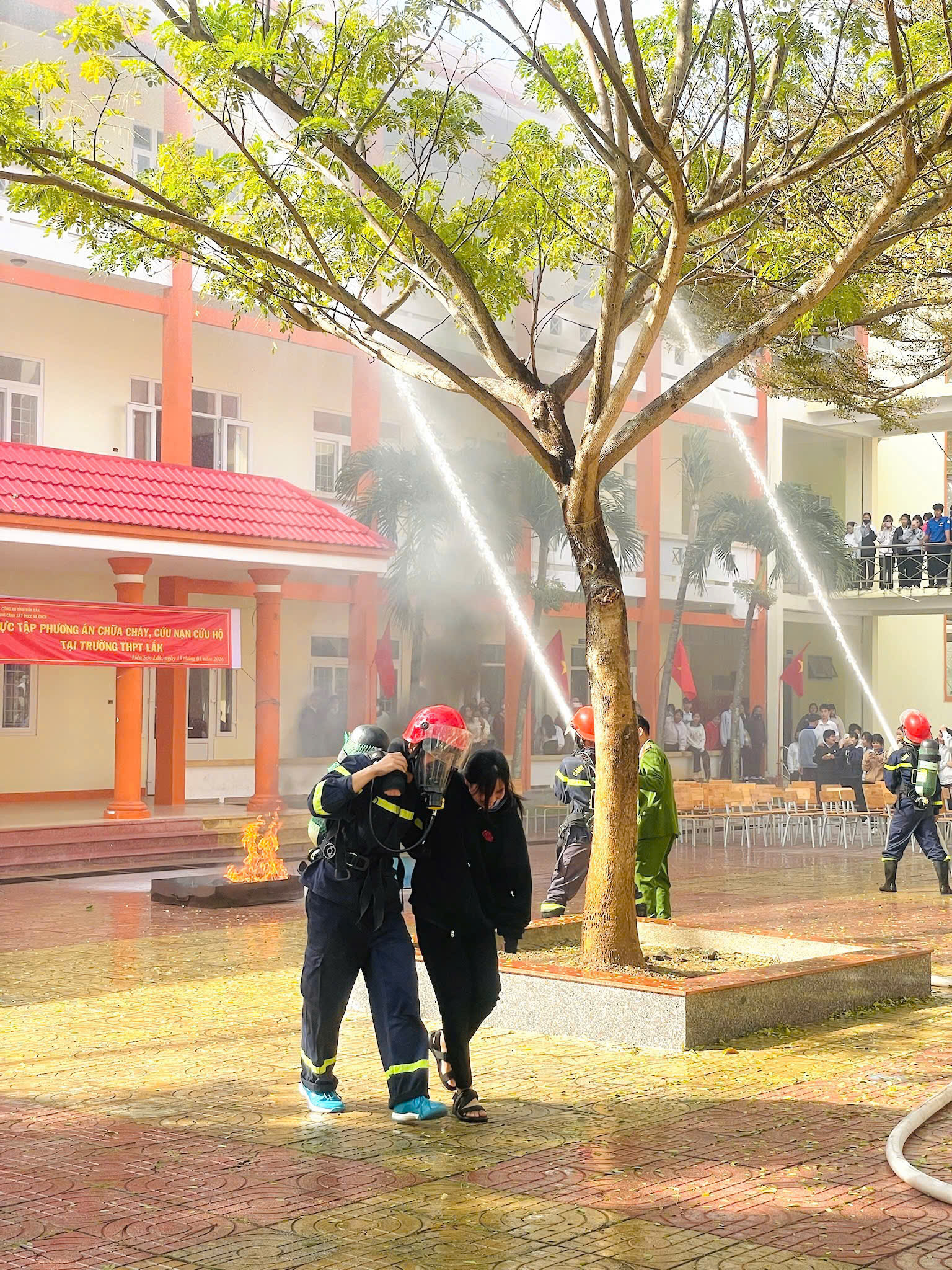 Diễn tập phòng cháy, chữa cháy tại Trường THPT Lăk.