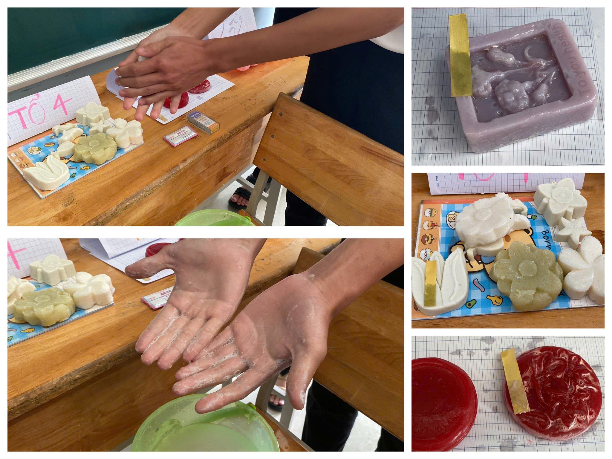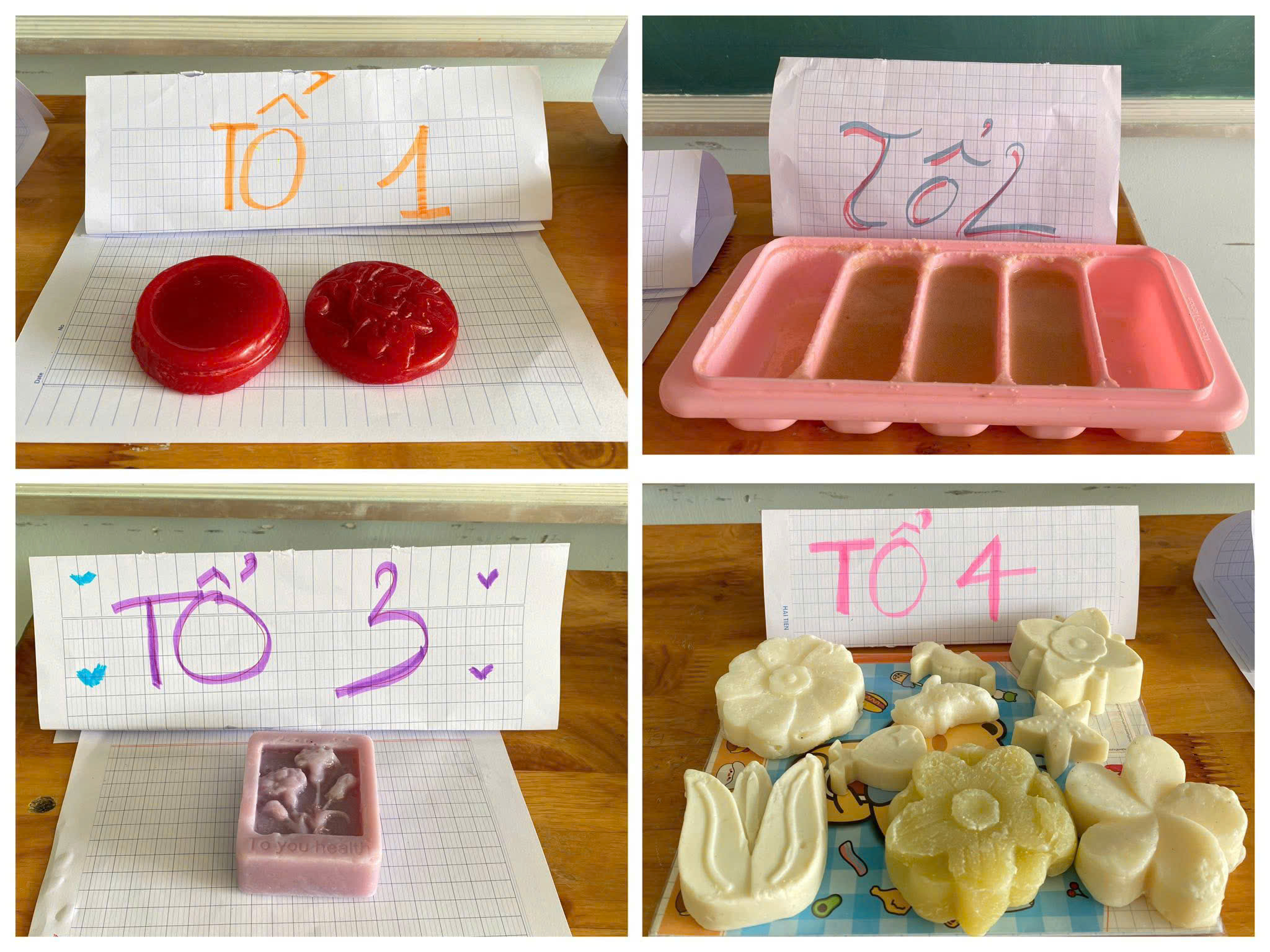 Không khí trên lớp trở nên sôi nổi và hào hứng hơn bao giờ hết khi thầy cô và các bạn cùng nhau chấm điểm sản phẩm, xem lại quá trình làm việc của từng nhóm và chia sẻ những kinh nghiệm thú vị. Những bánh xà phòng nhỏ bé ấy không chỉ là kết quả của một tiết học, mà còn là thành quả của sự hợp tác, sáng tạo và đam mê – minh họa sinh động cho việc một tiết học có thể mang lại nhiều trải nghiệm và vô vàn cảm xúc.