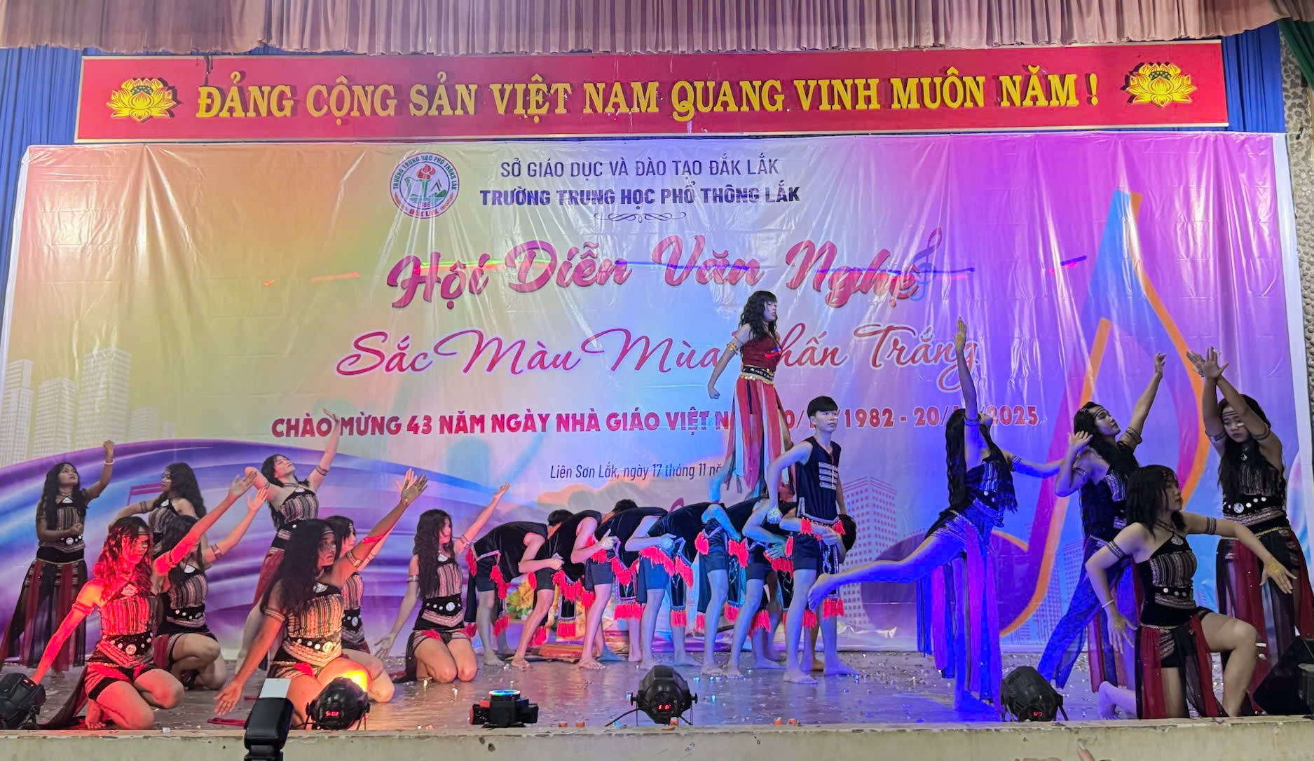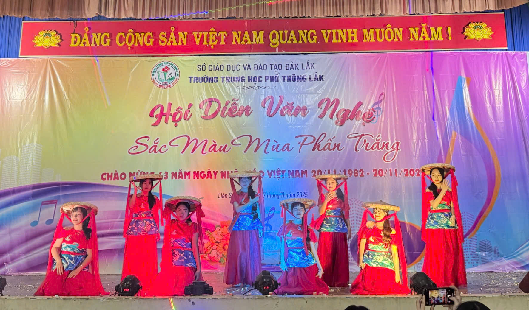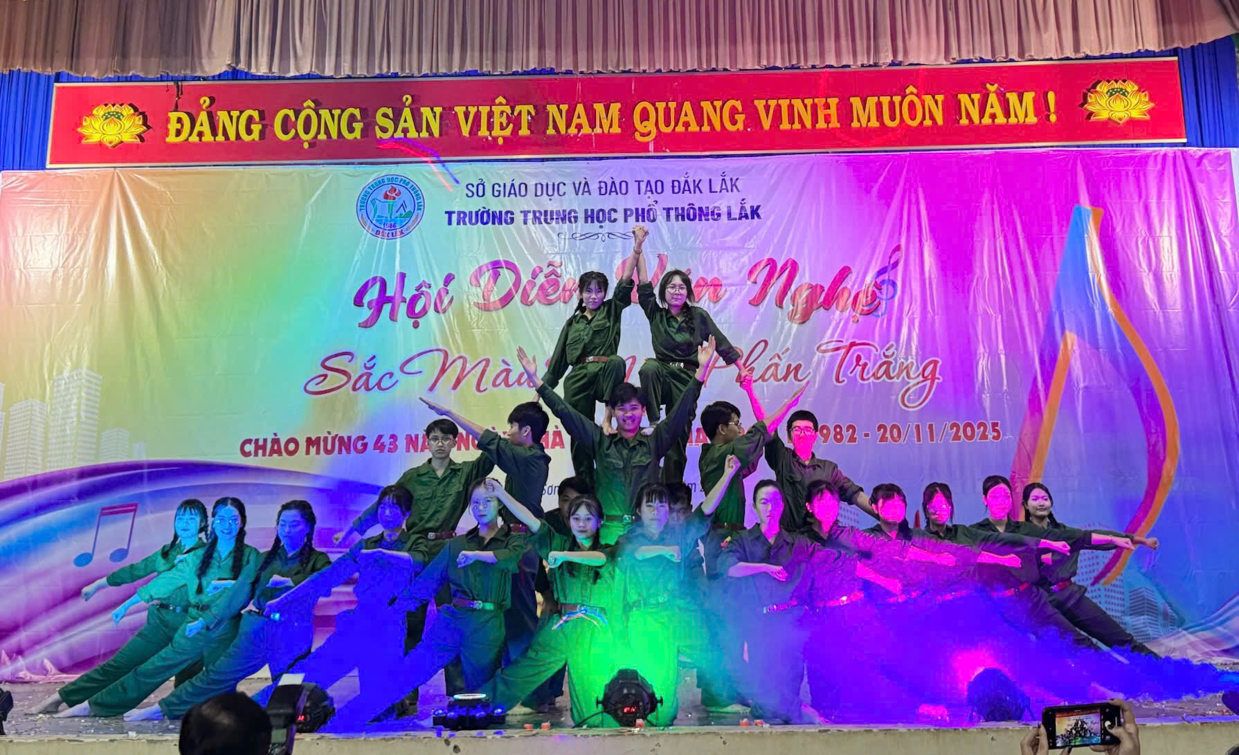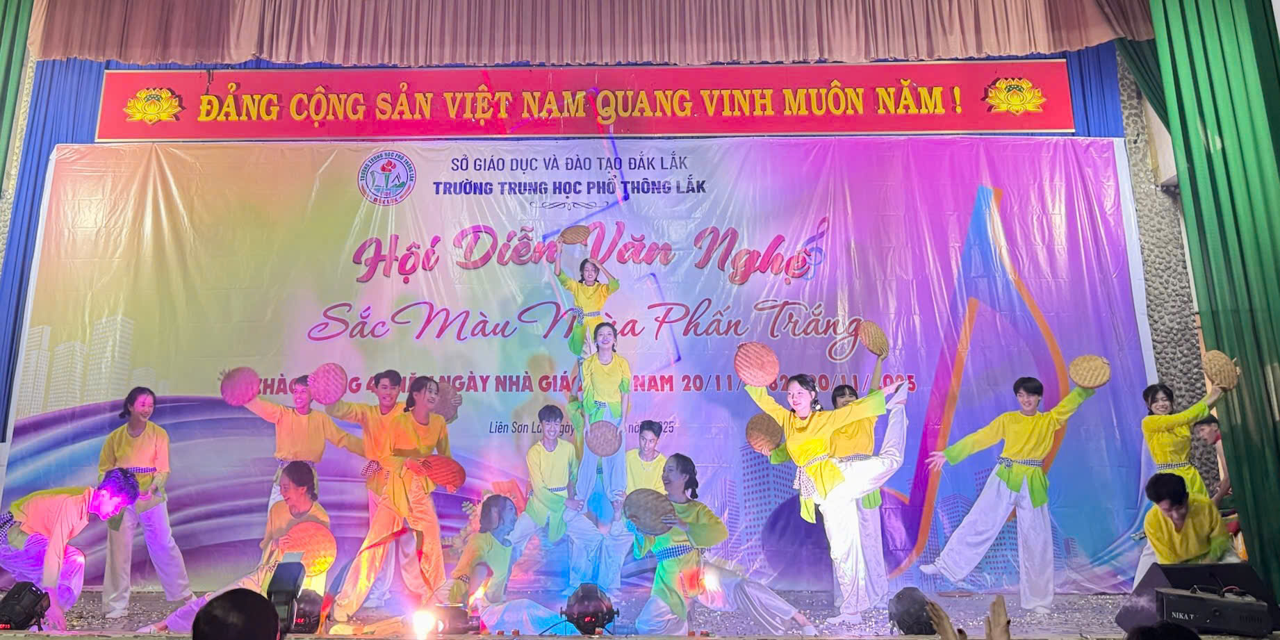 Chiều 17/11/2025, trong không khí sôi nổi hướng về Ngày Nhà giáo Việt Nam 20/11, Hội diễn Văn nghệ “Sắc Màu Mùa Phấn Trắng 2025” đã rực rỡ diễn ra tại trường THPT Lăk. Dù thời tiết không thuận lợi và chương trình được điều chỉnh tổ chức vào lúc 15h, nhưng nhiệt huyết của các lớp cùng sự háo hức của khán giả đã khiến sân trường bùng nổ cảm xúc hơn bao giờ hết.