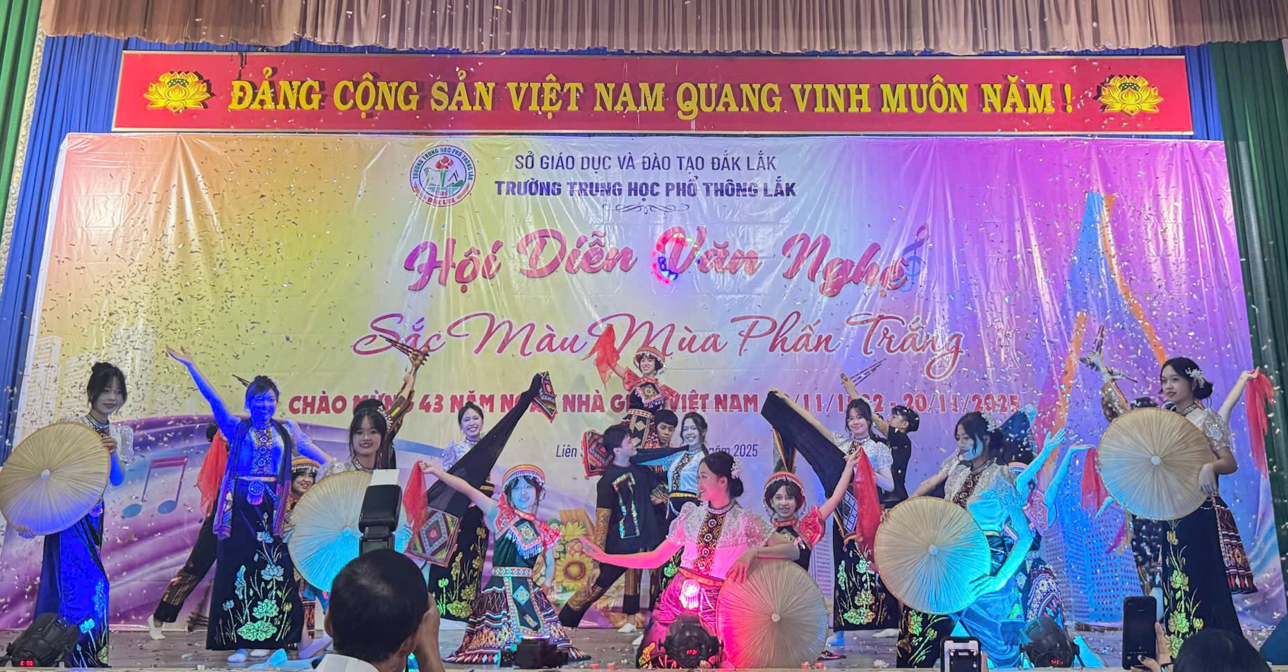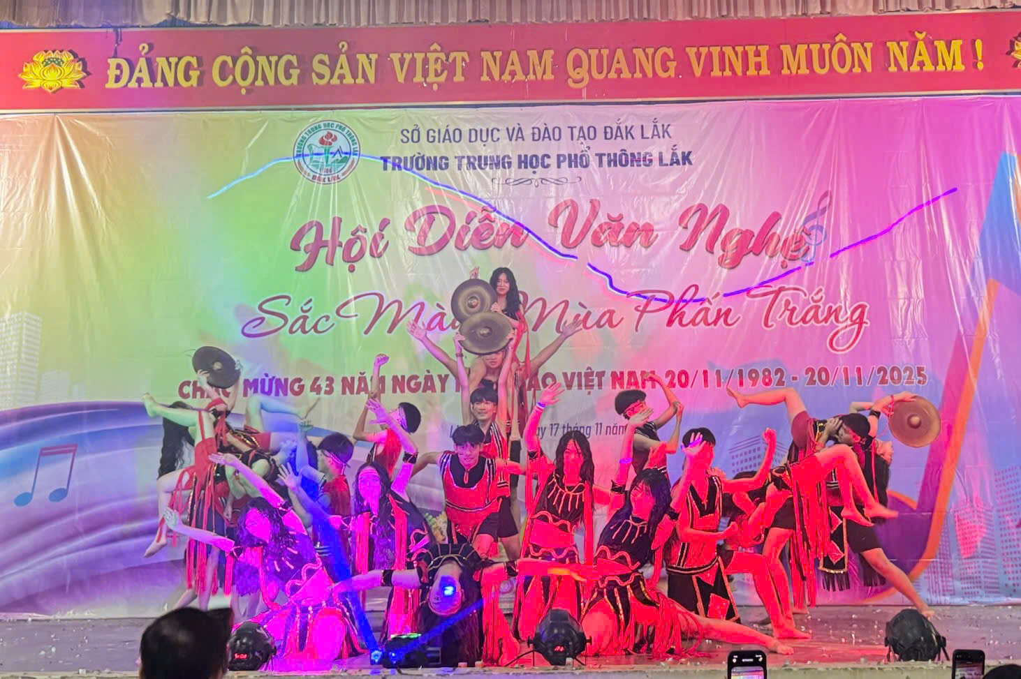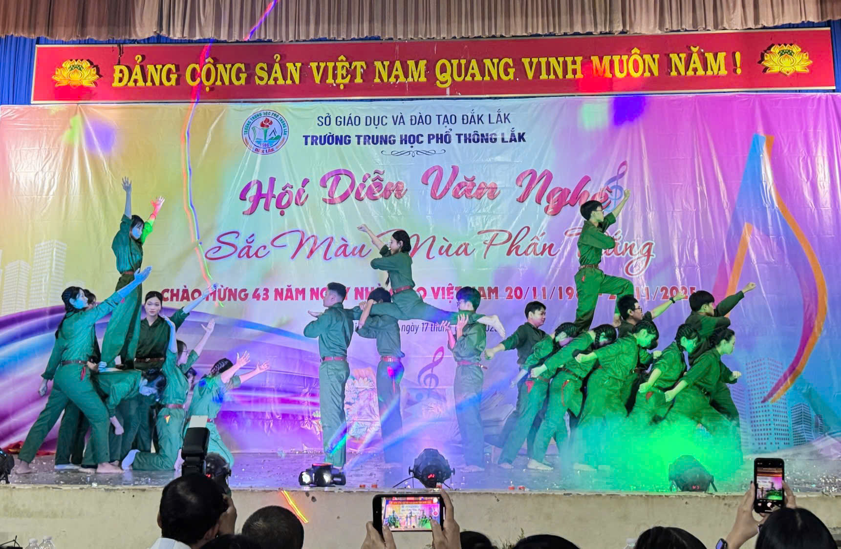Chiều 17/11/2025, trong không khí sôi nổi hướng về Ngày Nhà giáo Việt Nam 20/11, Hội diễn Văn nghệ “Sắc Màu Mùa Phấn Trắng 2025” đã rực rỡ diễn ra tại trường THPT Lăk. Dù thời tiết không thuận lợi và chương trình được điều chỉnh tổ chức vào lúc 15h, nhưng nhiệt huyết của các lớp cùng sự háo hức của khán giả đã khiến sân trường bùng nổ cảm xúc hơn bao giờ hết.