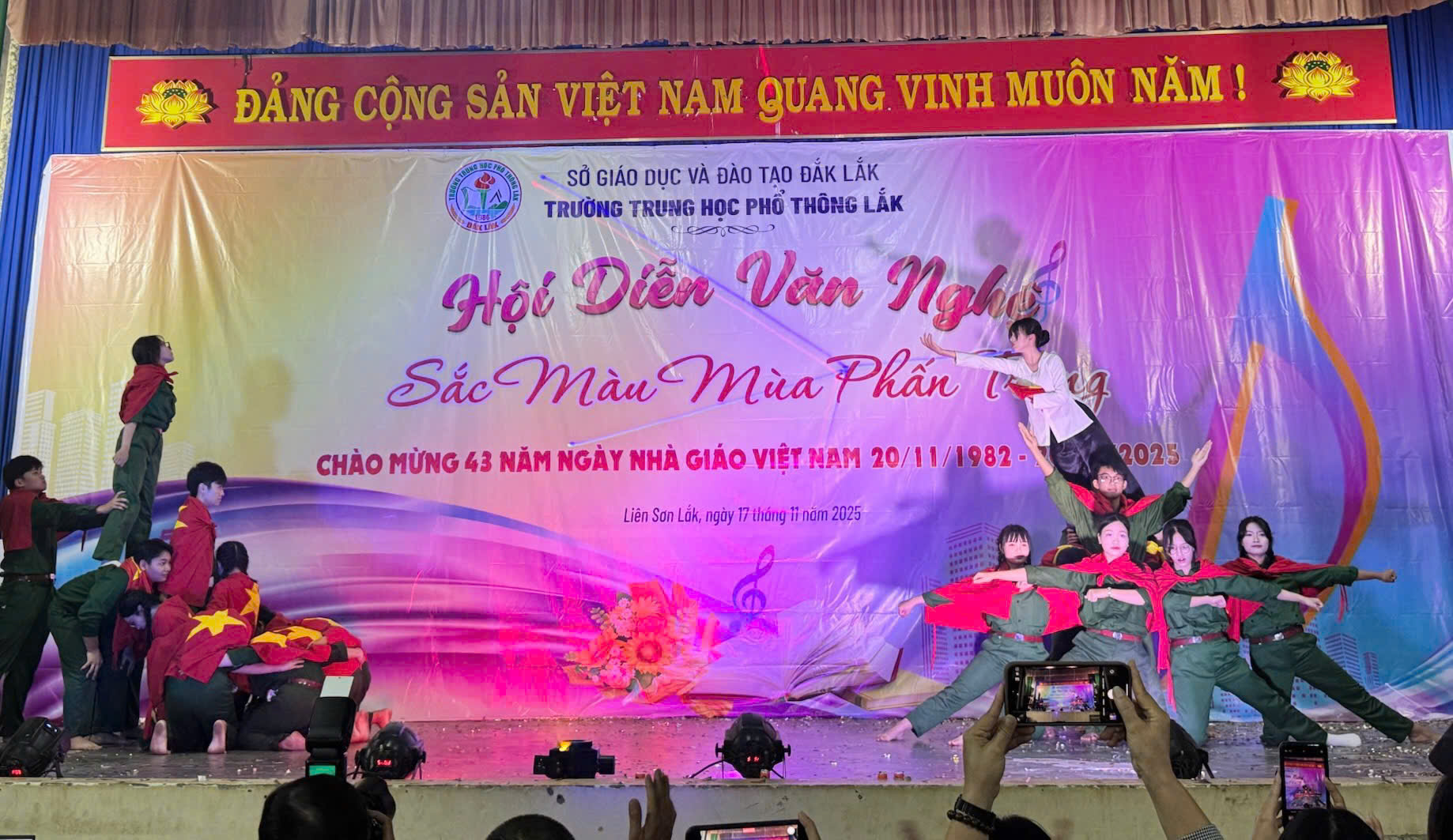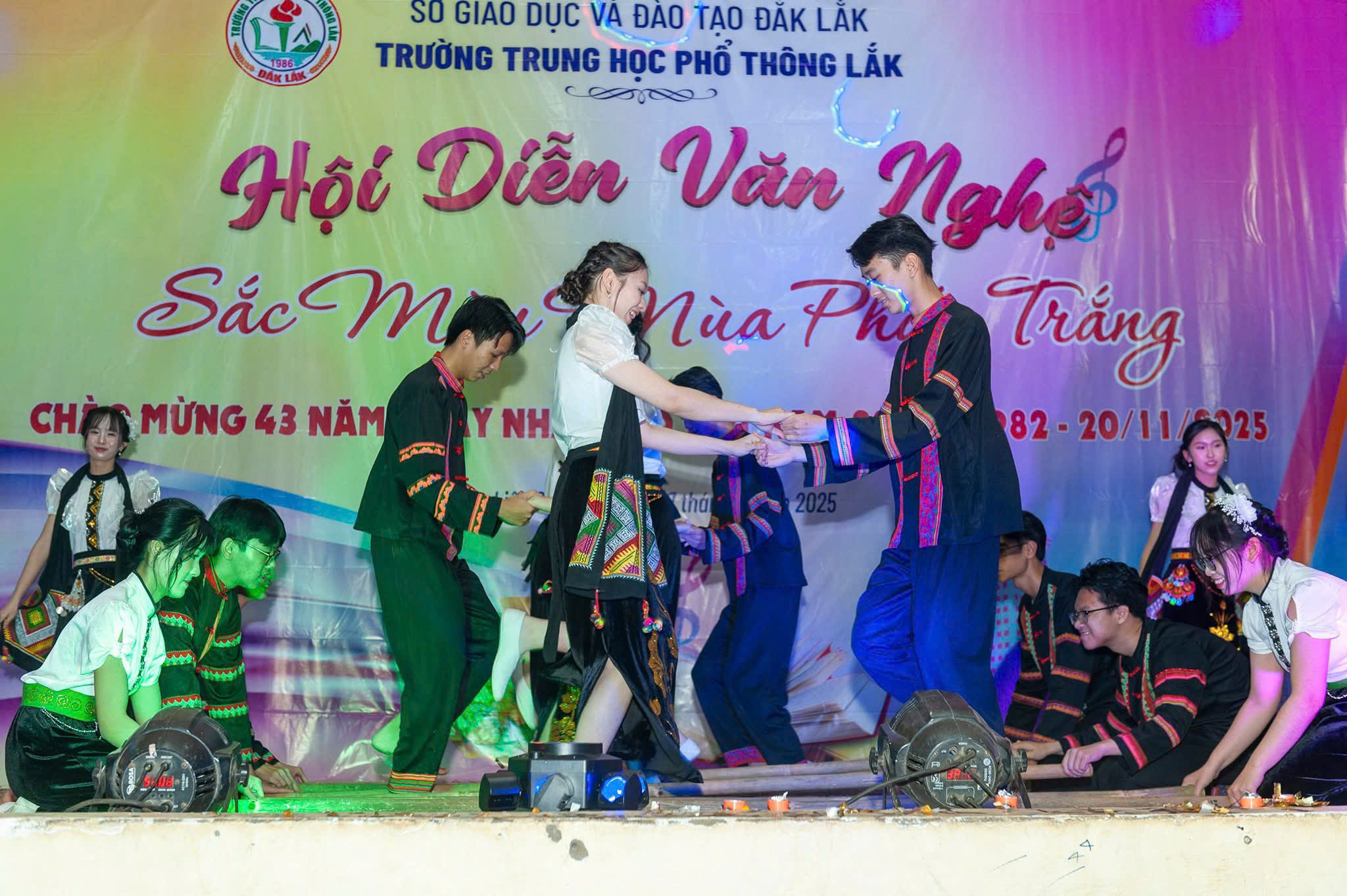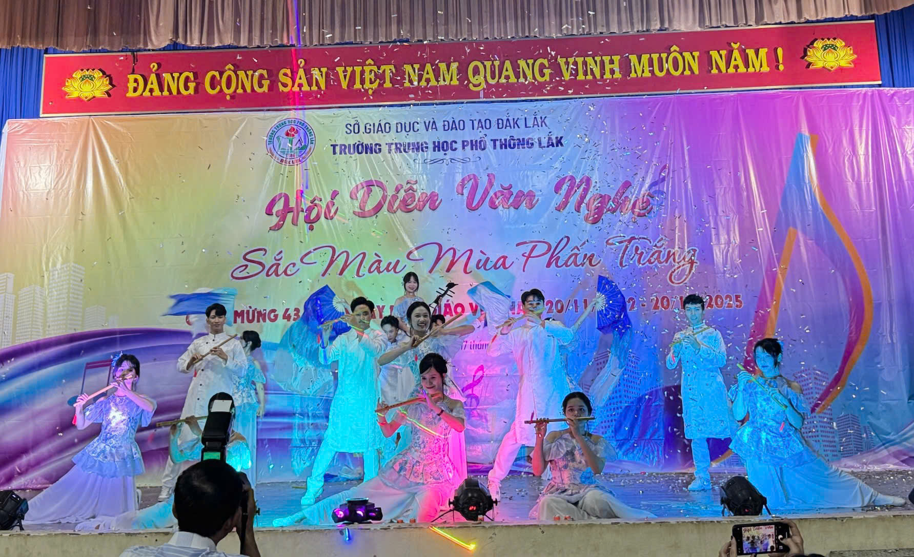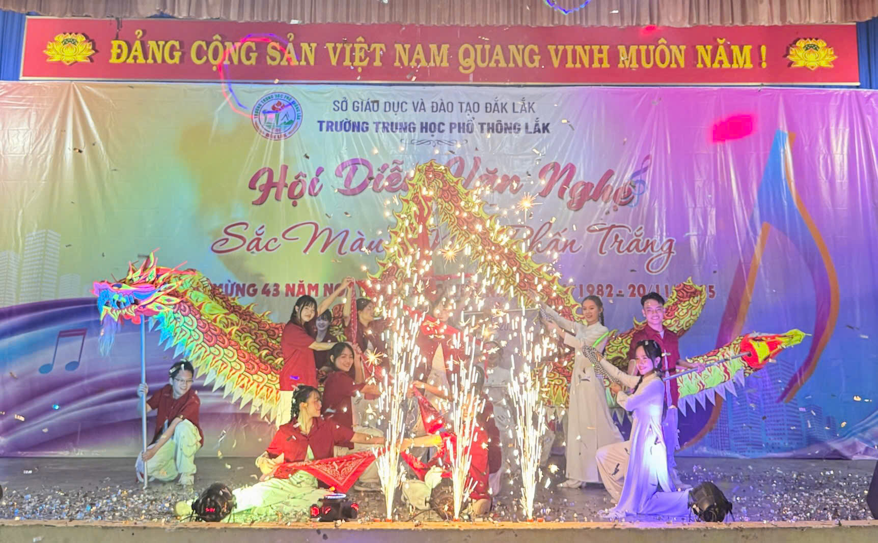 Chiều 17/11/2025, trong không khí sôi nổi hướng về Ngày Nhà giáo Việt Nam 20/11, Hội diễn Văn nghệ “Sắc Màu Mùa Phấn Trắng 2025” đã rực rỡ diễn ra tại trường THPT Lăk. Dù thời tiết không thuận lợi và chương trình được điều chỉnh tổ chức vào lúc 15h, nhưng nhiệt huyết của các lớp cùng sự háo hức của khán giả đã khiến sân trường bùng nổ cảm xúc hơn bao giờ hết.