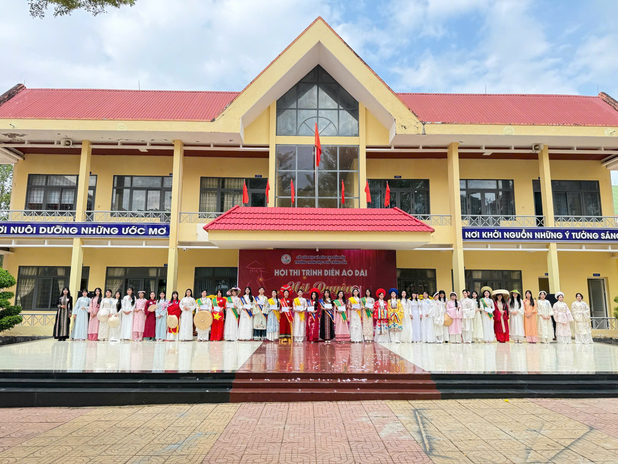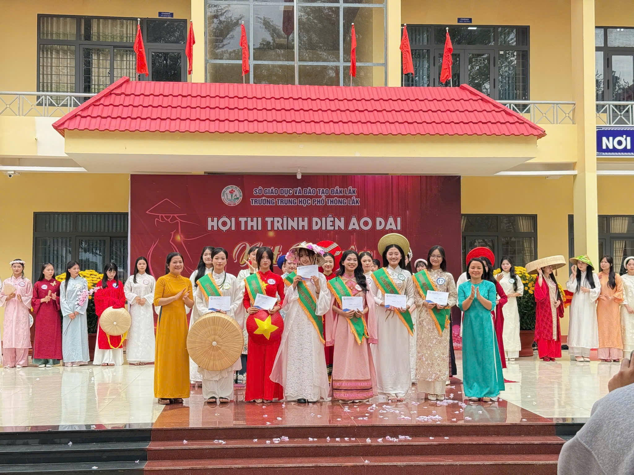 Dưới ánh nắng đầu tháng Ba, 41 thí sinh đến từ các khối 10, 11 và 12 đã tự tin sải bước, mang đến những phần trình diễn duyên dáng, thanh lịch và đậm đà bản sắc dân tộc. Tà áo dài thướt tha trong gió không chỉ tôn vinh vẻ đẹp truyền thống của người phụ nữ Việt Nam mà còn thể hiện sự tự tin, bản lĩnh và nét đẹp trí tuệ của nữ sinh THPT Lắk trong thời đại mới.