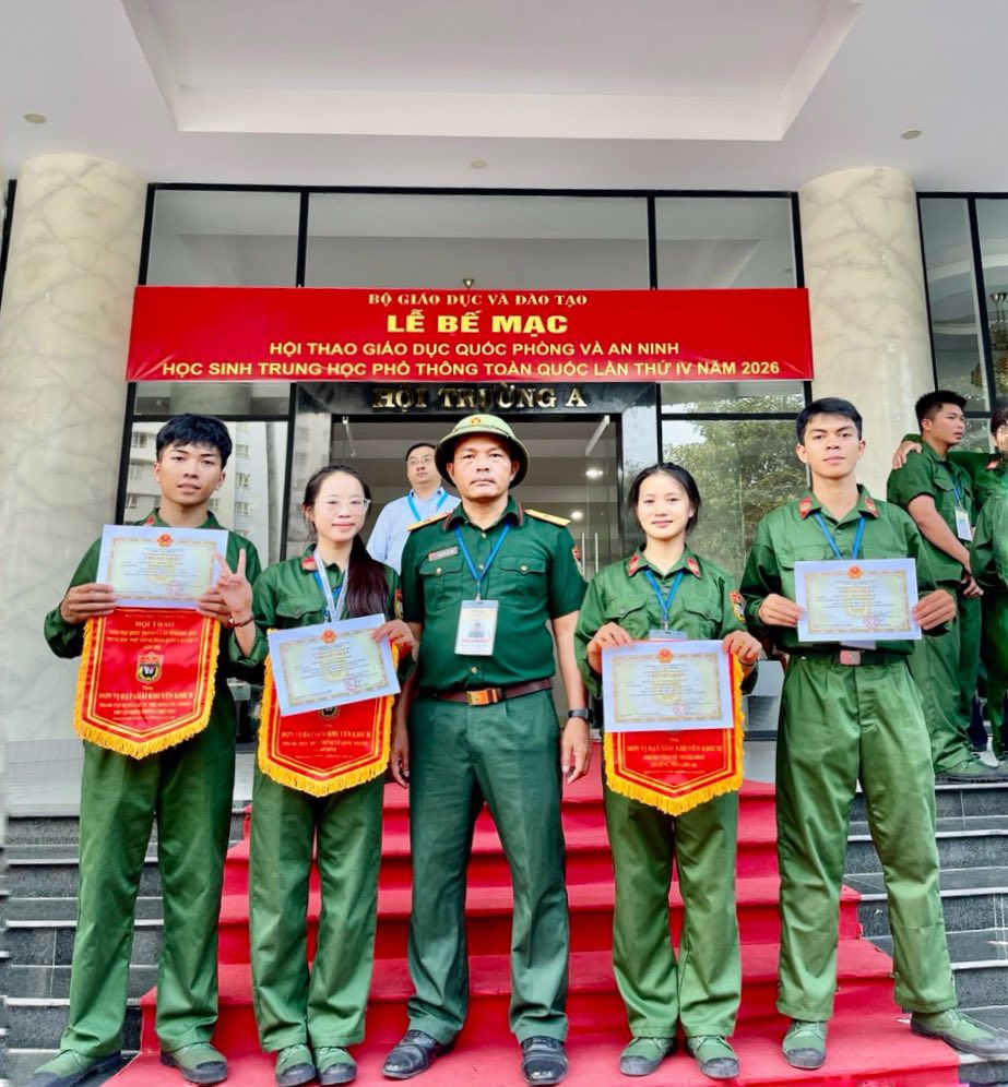 Trường THPT Lắk vinh dự khi có sự đồng hành của thầy Nguyễn Hữu Mùi cùng các em học sinh: Nguyễn Thúy Nga (12A7), Nguyễn Trần Phương Uyên (12A10), Y Min Du (12A7), Vũ Chiến Trường (12A2) trong Hội thao Giáo dục quốc phòng và an ninh học sinh THPT toàn quốc lần thứ IV năm 2026.