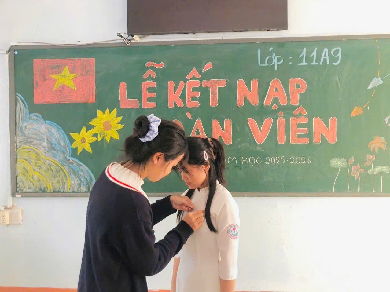 Buổi lễ được tiến hành đúng trình tự, nghi thức của Đoàn TNCS Hồ Chí Minh, thể hiện sự trân trọng đối với những nỗ lực phấn đấu của các em học sinh. Việc chính thức trở thành đoàn viên không chỉ đánh dấu bước trưởng thành quan trọng mà còn khẳng định niềm tin của nhà trường vào thế hệ thanh niên giàu nhiệt huyết, sẵn sàng cống hiến cho tập thể và cộng đồng.
