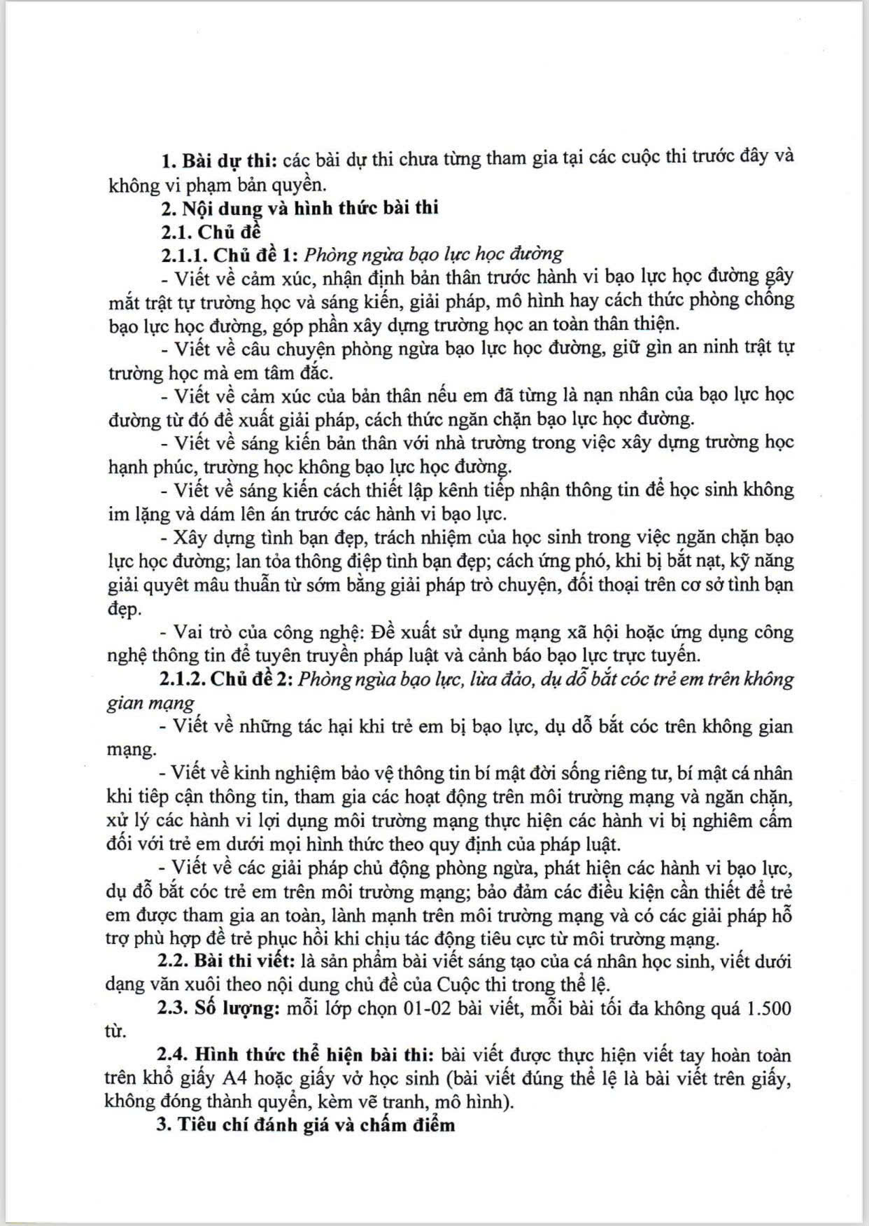 Cuộc thi dành cho toàn thể học sinh của 33 lớp trong nhà trường. Mỗi bài dự thi là sản phẩm sáng tạo cá nhân, thể hiện suy nghĩ, quan điểm và ý tưởng của học sinh xoay quanh các vấn đề như phòng ngừa bạo lực học đường, xây dựng môi trường học tập văn minh, cũng như nâng cao kỹ năng nhận diện và phòng tránh các hành vi bạo lực, lừa đảo, dụ dỗ trên không gian mạng.