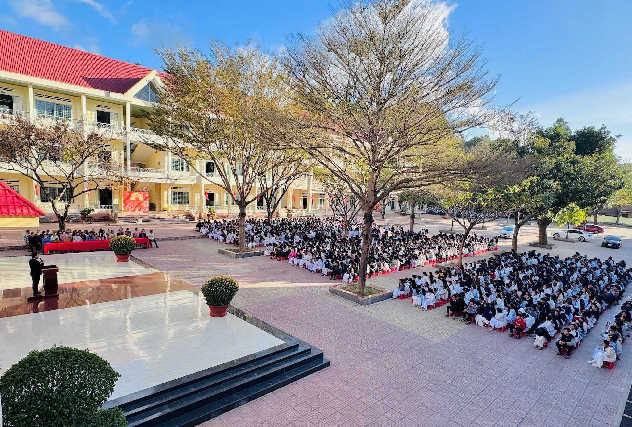 Toàn cảnh Trường THPT Lắk trong buổi sinh hoạt dưới cờ tuần 23.
