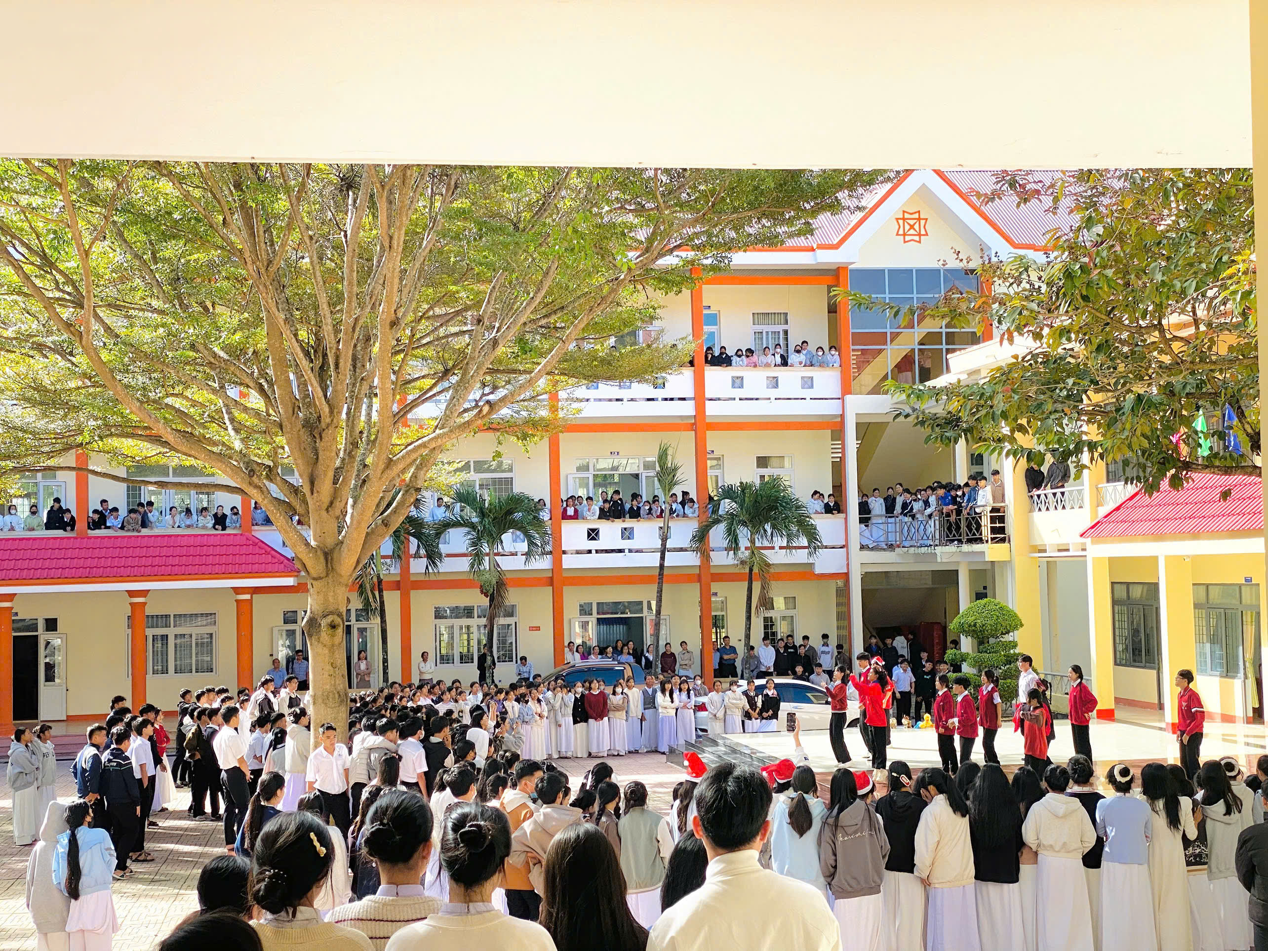 Khi tháng 12 khép lại, mang theo những bận rộn vừa đi qua và mở ra cánh cửa hy vọng cho năm mới, sân trường THPT Lắk lại bừng sáng trong sắc màu của mùa lễ hội. Đây không chỉ là một buổi sinh hoạt giữa giờ, mà là khoảnh khắc để chúng ta dừng lại – nhìn nhau, mỉm cười và cùng sẻ chia tinh thần tích cực trước hành trình mới đang đến.