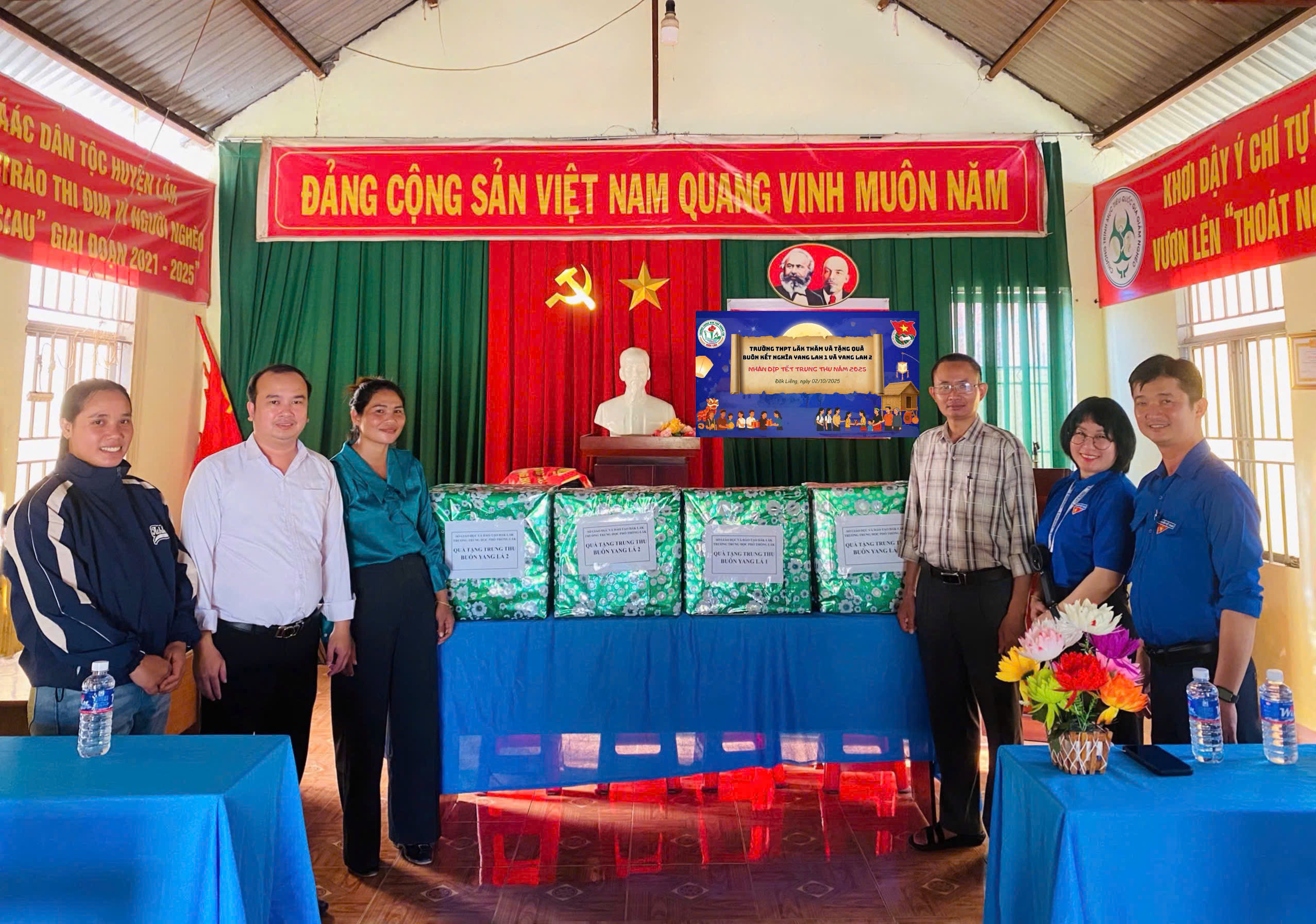 Đại diện Ban Giám hiệu cùng Đoàn Thanh niên trường THPT Lắk đã đến thăm và trao tặng những phần quà ấm áp nghĩa tình cho các em nhỏ tại hai buôn kết nghĩa Yang Lá I và Yang Lá II nhân dịp tết Trung Thu năm 2025.