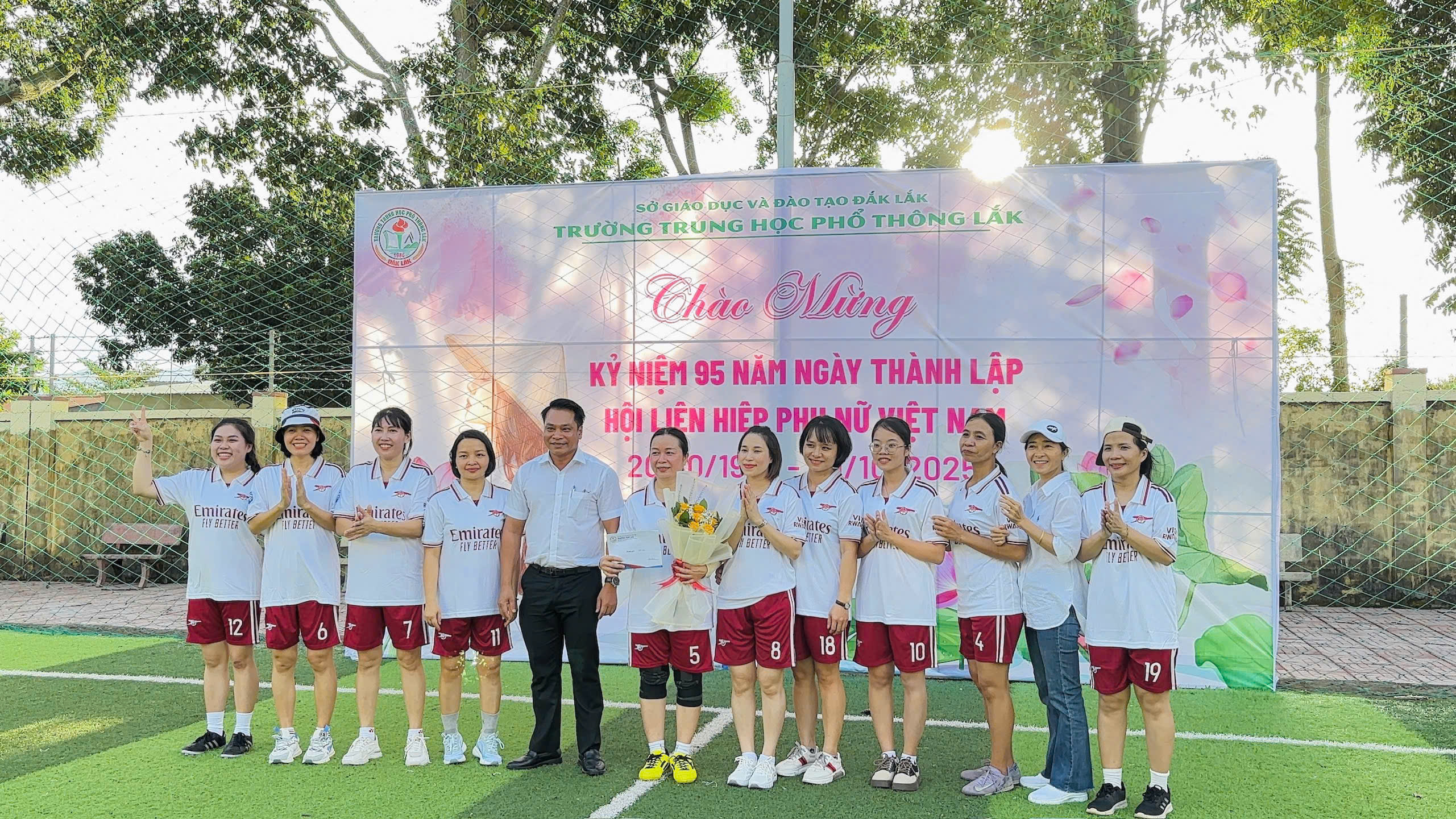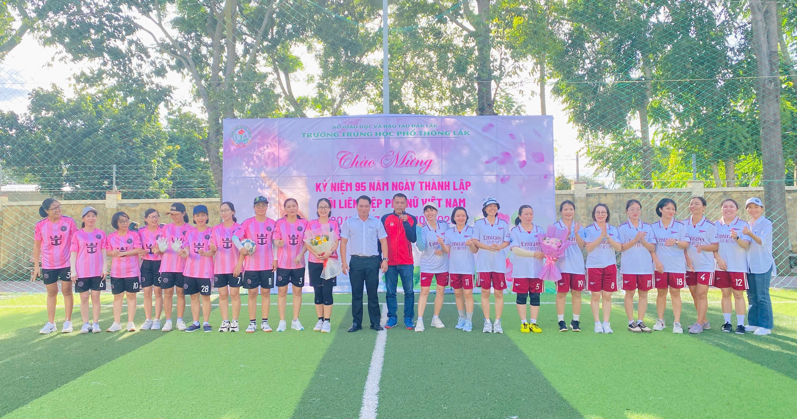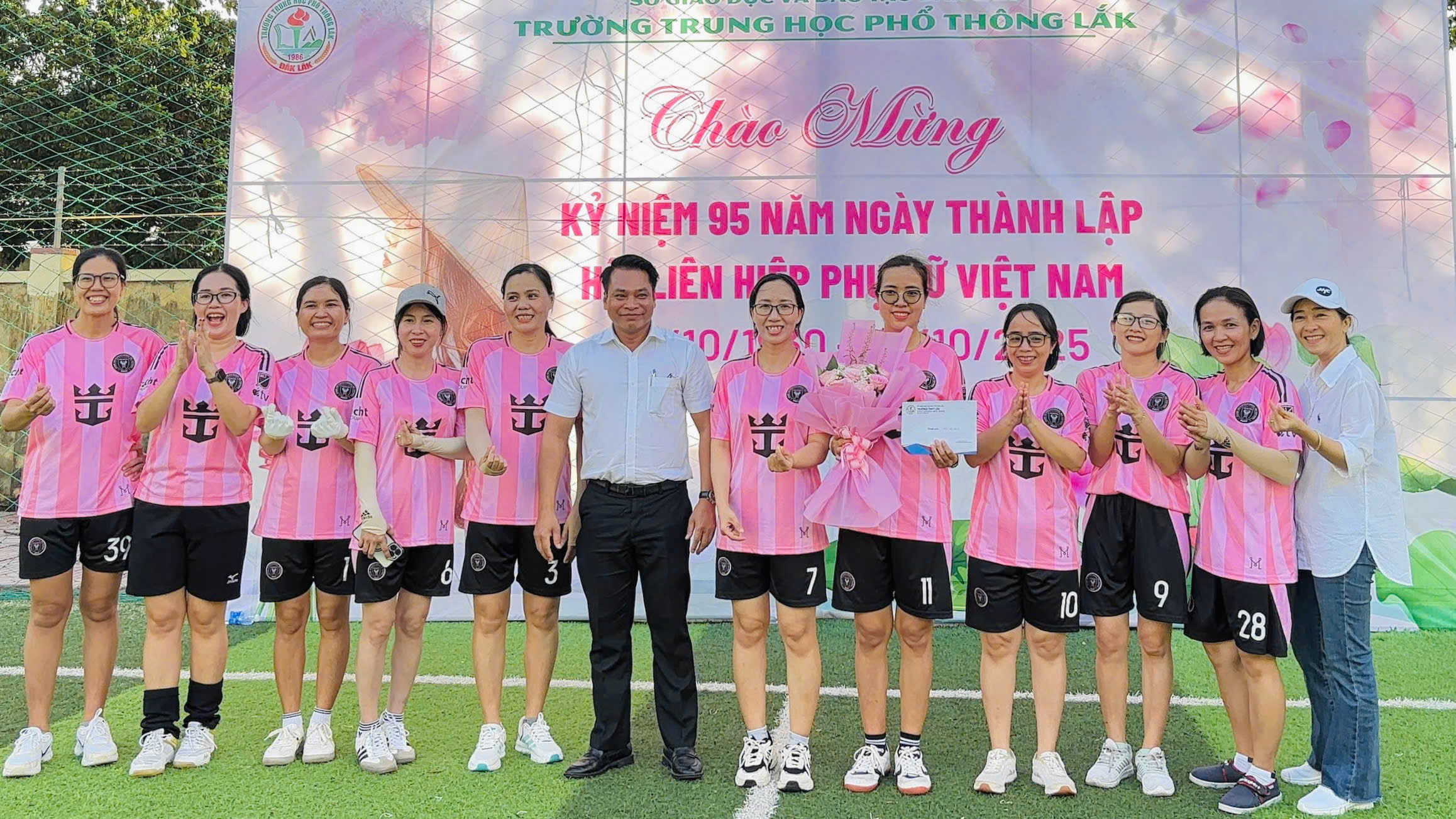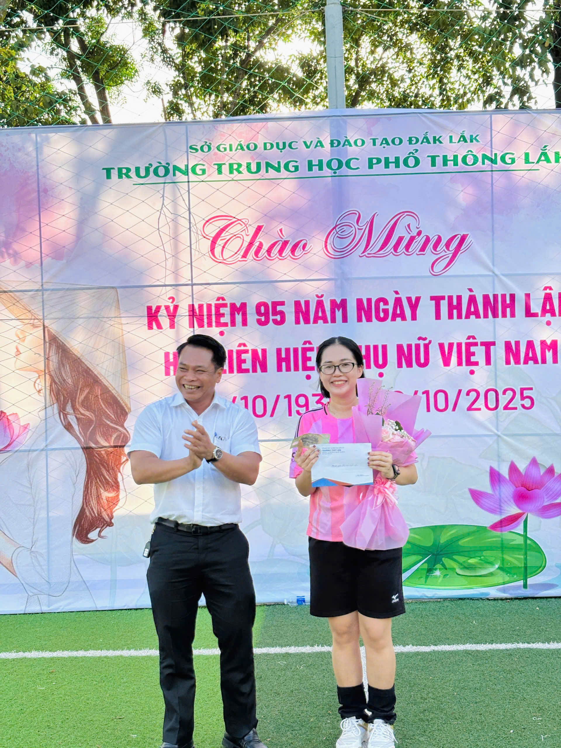 Chiều ngày 17/10/2025, sân bóng Trường THPT Lăk rộn ràng tiếng reo hò, cổ vũ khi diễn ra trận giao lưu bóng đá nữ giữa hai đội: Tổ Tự nhiên, Văn phòng và Tổ Xã hội, chào mừng kỷ niệm 95 năm Ngày Phụ nữ Việt Nam (20/10/1930 – 20/10/2025).
