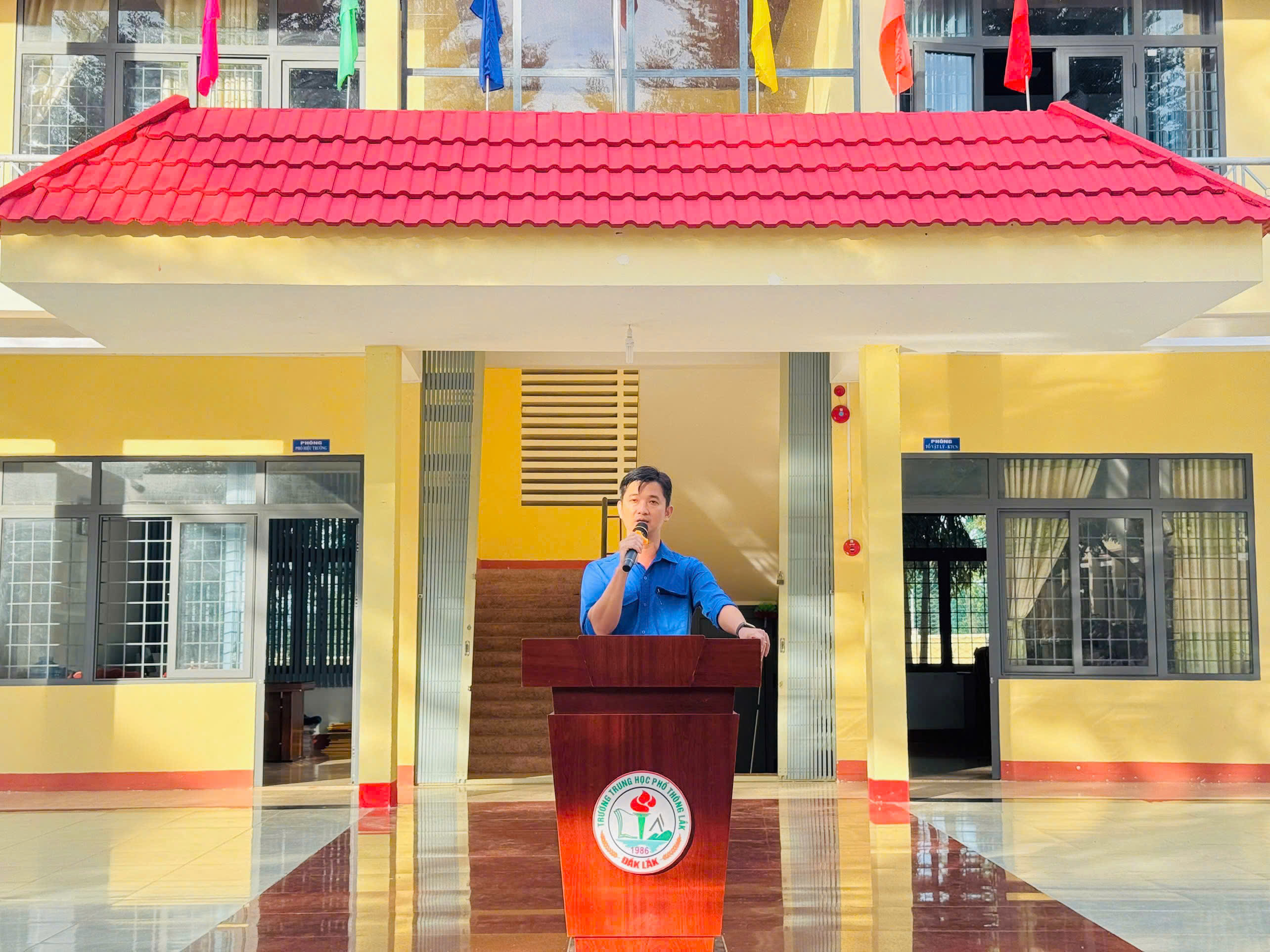 Sáng thứ Hai, ngày 10/11/2025, trong không khí trang nghiêm của buổi sinh hoạt dưới cờ tuần 10, Trường THPT Lăk đã tổ chức buổi tuyên truyền hưởng ứng Ngày Pháp luật Việt Nam (9/11) với hai nội dung trọng tâm: “An toàn giao thông trong học đường” và “Phòng chống bạo lực học đường”.