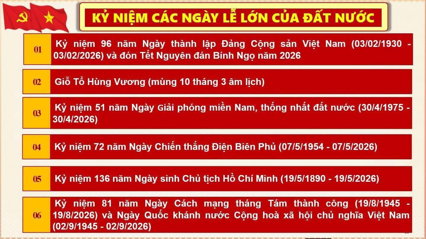Đợt tuyên truyền tập trung vào các ngày lễ trọng đại: Giỗ Tổ Hùng Vương (mùng 10/3 âm lịch), Ngày Giải phóng miền Nam, thống nhất đất nước (30/4), Ngày Quốc tế Lao động (1/5) và kỷ niệm 72 năm Chiến thắng Điện Biên Phủ (7/5). Mỗi ngày lễ là một câu chuyện lịch sử, một biểu tượng của ý chí kiên cường và khát vọng độc lập, tự do của dân tộc Việt Nam.